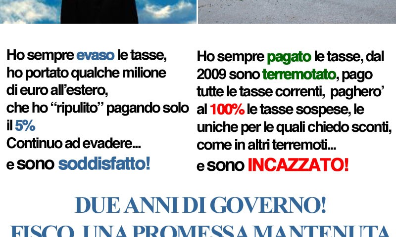 Ma per calarsi veramente nello stato d’animo degli aquilani bisogna scrollare fino in fondo alla pagina dove, sulla destra, si parla di una promessa (non) mantenuta. Eccola: